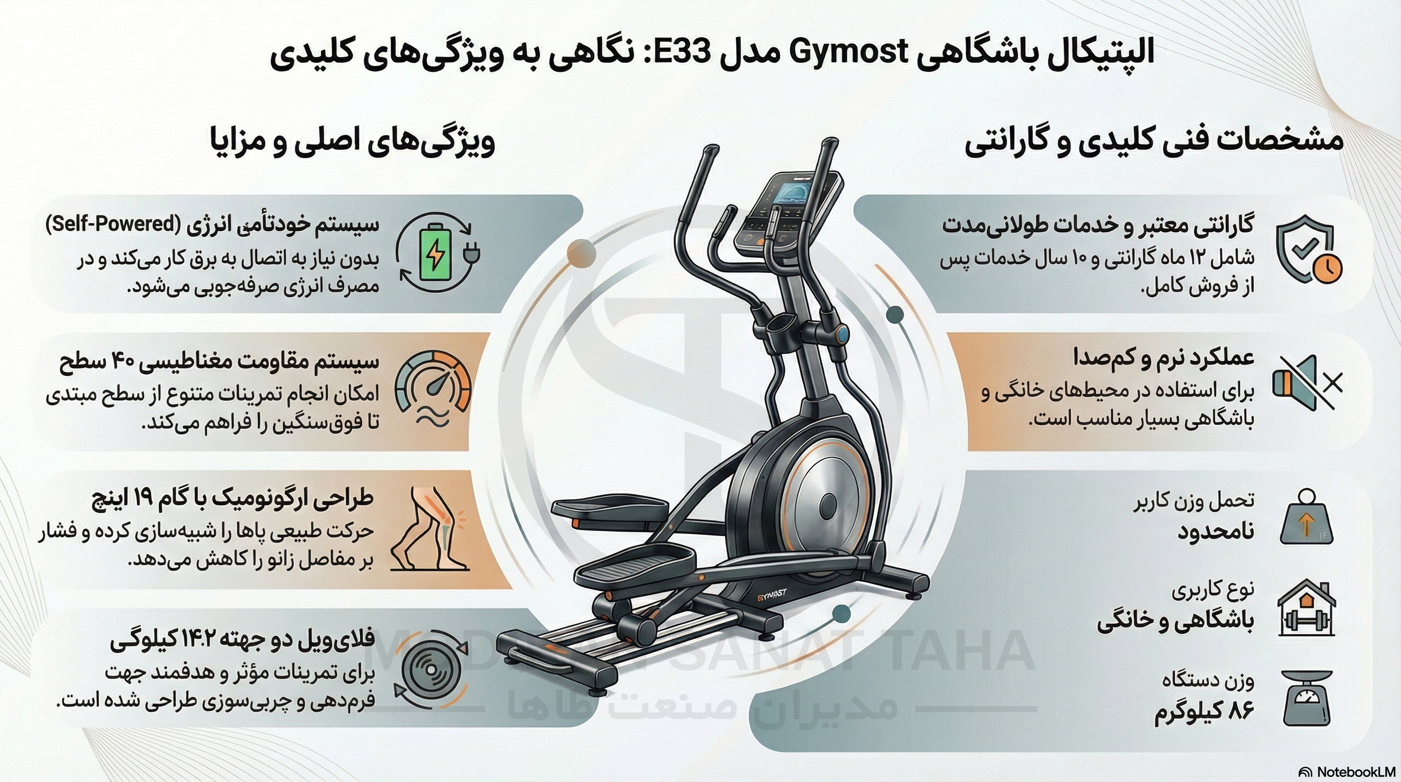 الپتیکال مدل E33 برند اورجینال Gymost یک دستگاه هوازی حرفهای و کمصداست که با بهرهگیری از فلایویل دو جهته ۱۴.۲ کیلوگرمی، امکان تمرین هدفمند برای چربیسوزی و فرمدهی همزمان کمر، باسن و پاها را فراهم میکند. قابلیت حرکت در دو جهت، این دستگاه را به گزینهای ایدهآل برای تمرینات متنوع و مؤثر خانگی و باشگاهی تبدیل کرده است.