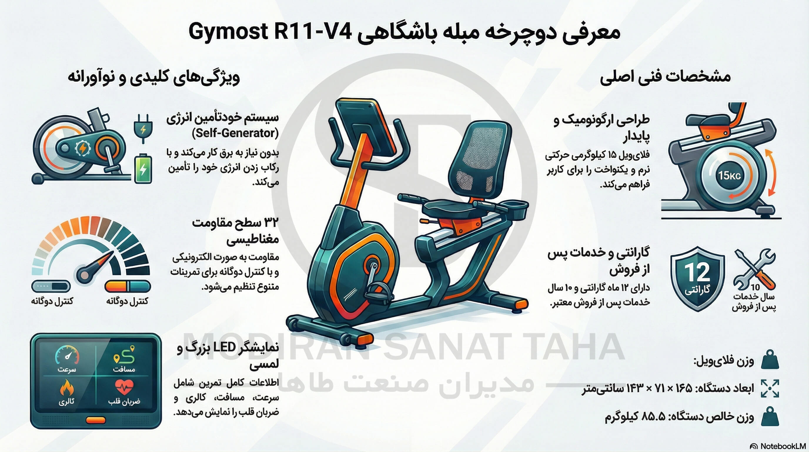دوچرخه ثابت نشسته جلو محرک GYMOST مدل R11-V4 با بهرهگیری از سیستم کنترل مغناطیسی دوگانه و فلایویل جلو به وزن ۱۵ کیلوگرم، حرکتی نرم، یکنواخت و بسیار پایدار را در حین تمرین فراهم میکند. ساختار بدنه تقویتشده با طراحی مهندسیشده، تحمل وزن بالا و ایمنی مطلوب را تضمین کرده و این دستگاه را به گزینهای مناسب برای استفاده خانگی حرفهای و باشگاهها تبدیل میکند.